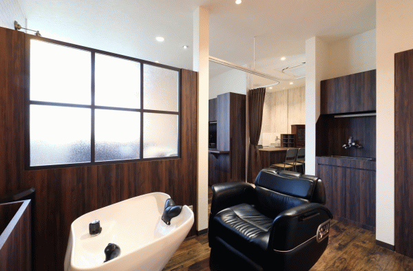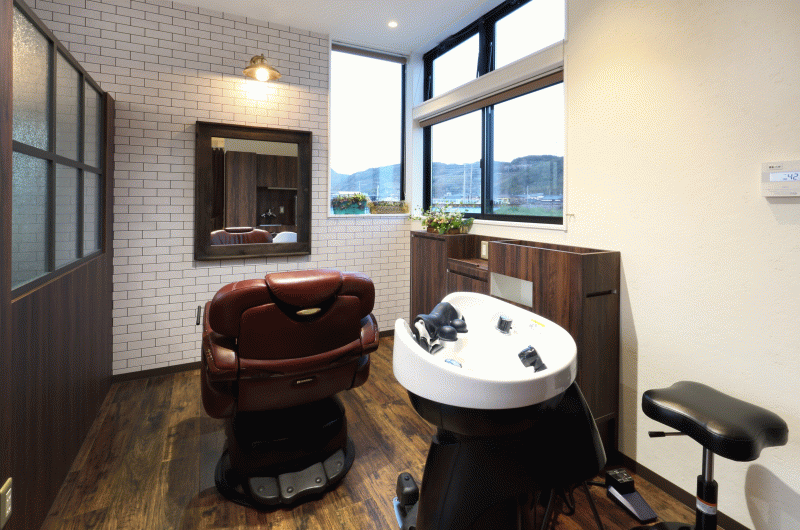 店内より列車を見ながらサービスを受けることができます。こちらのシャンプー台はゆっくり寝ながら寛ぐことができます。