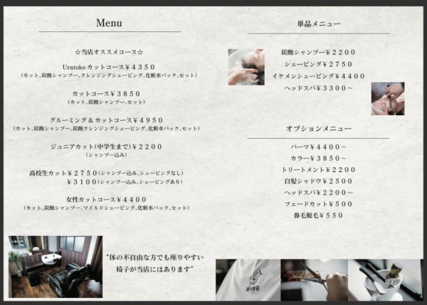 店内障がい者対策椅子が設置してあります!前シャンプー、後ろシャンプー対応可能です。