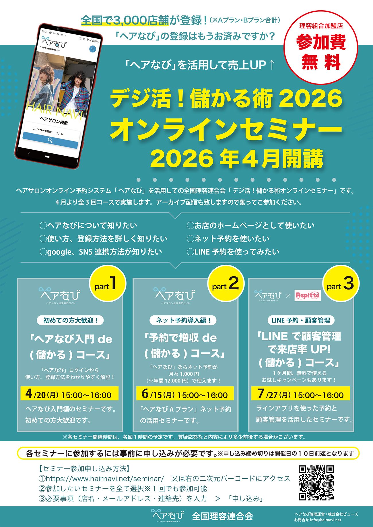 「ヘアなび A プラン」ネット予約の活用のセミナーです。
