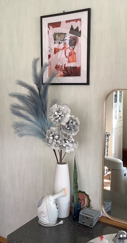 妖しい雰囲気の造花とアメリカンポップな複製画を買いました。