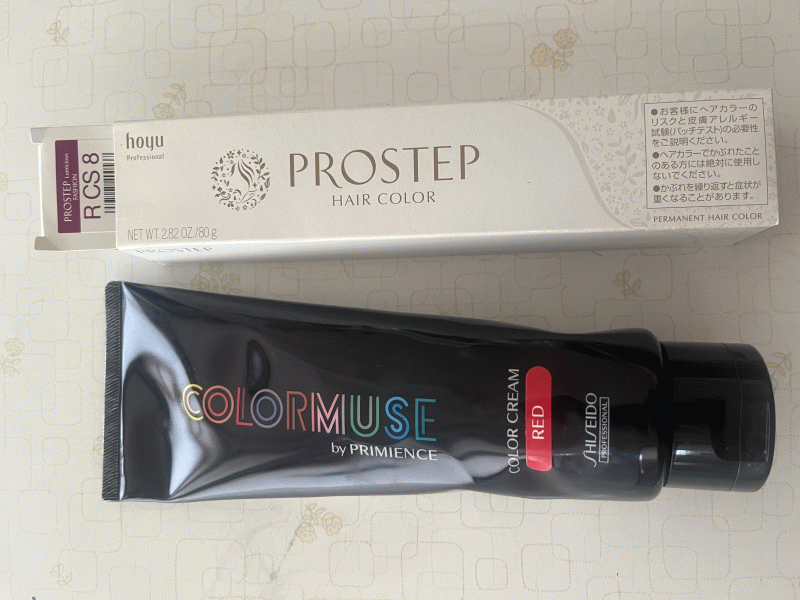 資生堂カラームース赤色 hoyu プロステップ紫色 使用
